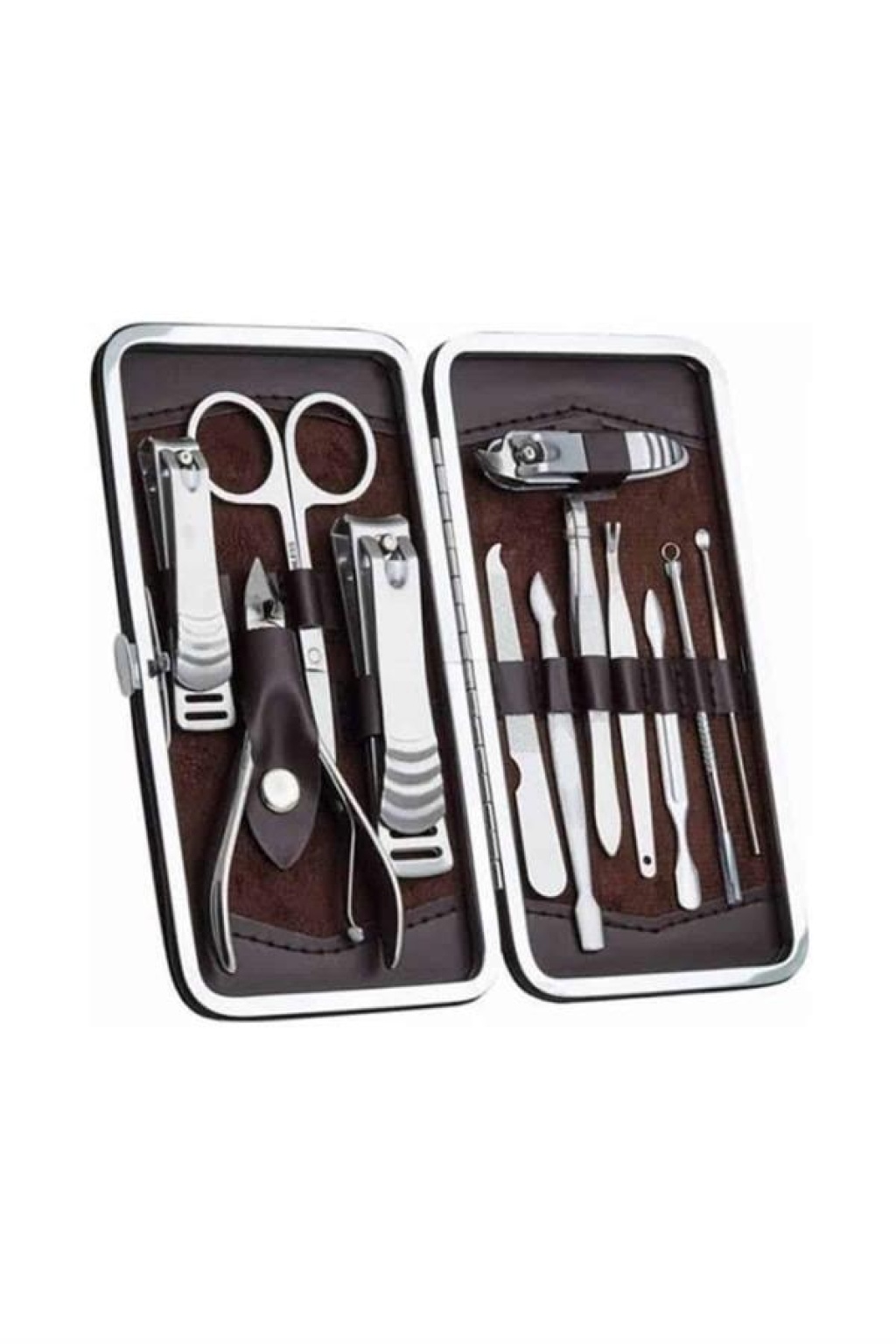 Özel deri çantalı, hepsi bir arada bakım seti ile kişisel bakımınızı dilediğiniz her yerde yapabilirsiniz. El ve ayak bakımınızı evde kolayca yaparak zaman ve maliyet tasarrufu sağlarken, paslanmaz çelikten üretilmiş dayanıklı aletlerle uzun ömürlü kullanım elde edersiniz. Taşınabilir boyutu sayesinde çantanızda rahatça taşıyabilir, seyahatlerinizde yanınızda bulundurabilirsiniz. Setin içinde kulak çekme aparatı, çok amaçlı makas, manikür makası, üç farklı tırnak makası/düzeltici, pense, kir temizleme aparatı, kaş cımbızı, manikür bıçağı, tırnak törpüsü ve akne iğnesi yer almaktadır. Şık ve kullanışlı tasarımıyla hem kişisel bakımınızı tamamlamanızı sağlar hem de hediye olarak tercih edebileceğiniz harika bir seçenektir.