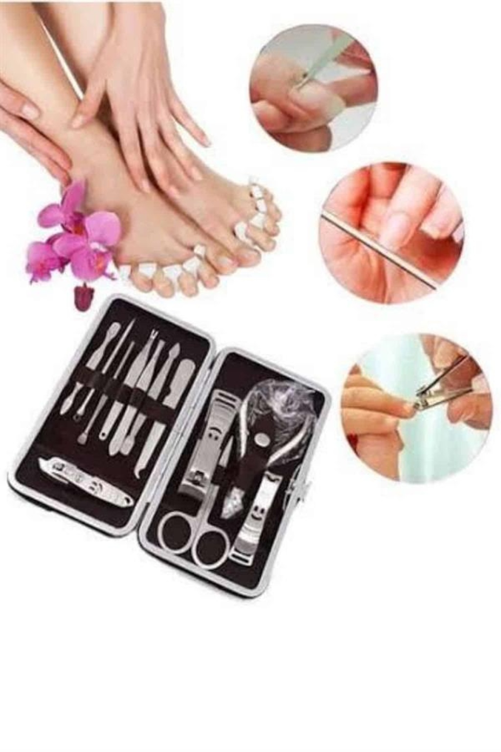 Özel deri çantalı, hepsi bir arada bakım seti ile kişisel bakımınızı dilediğiniz her yerde yapabilirsiniz. El ve ayak bakımınızı evde kolayca yaparak zaman ve maliyet tasarrufu sağlarken, paslanmaz çelikten üretilmiş dayanıklı aletlerle uzun ömürlü kullanım elde edersiniz. Taşınabilir boyutu sayesinde çantanızda rahatça taşıyabilir, seyahatlerinizde yanınızda bulundurabilirsiniz. Setin içinde kulak çekme aparatı, çok amaçlı makas, manikür makası, üç farklı tırnak makası/düzeltici, pense, kir temizleme aparatı, kaş cımbızı, manikür bıçağı, tırnak törpüsü ve akne iğnesi yer almaktadır. Şık ve kullanışlı tasarımıyla hem kişisel bakımınızı tamamlamanızı sağlar hem de hediye olarak tercih edebileceğiniz harika bir seçenektir.