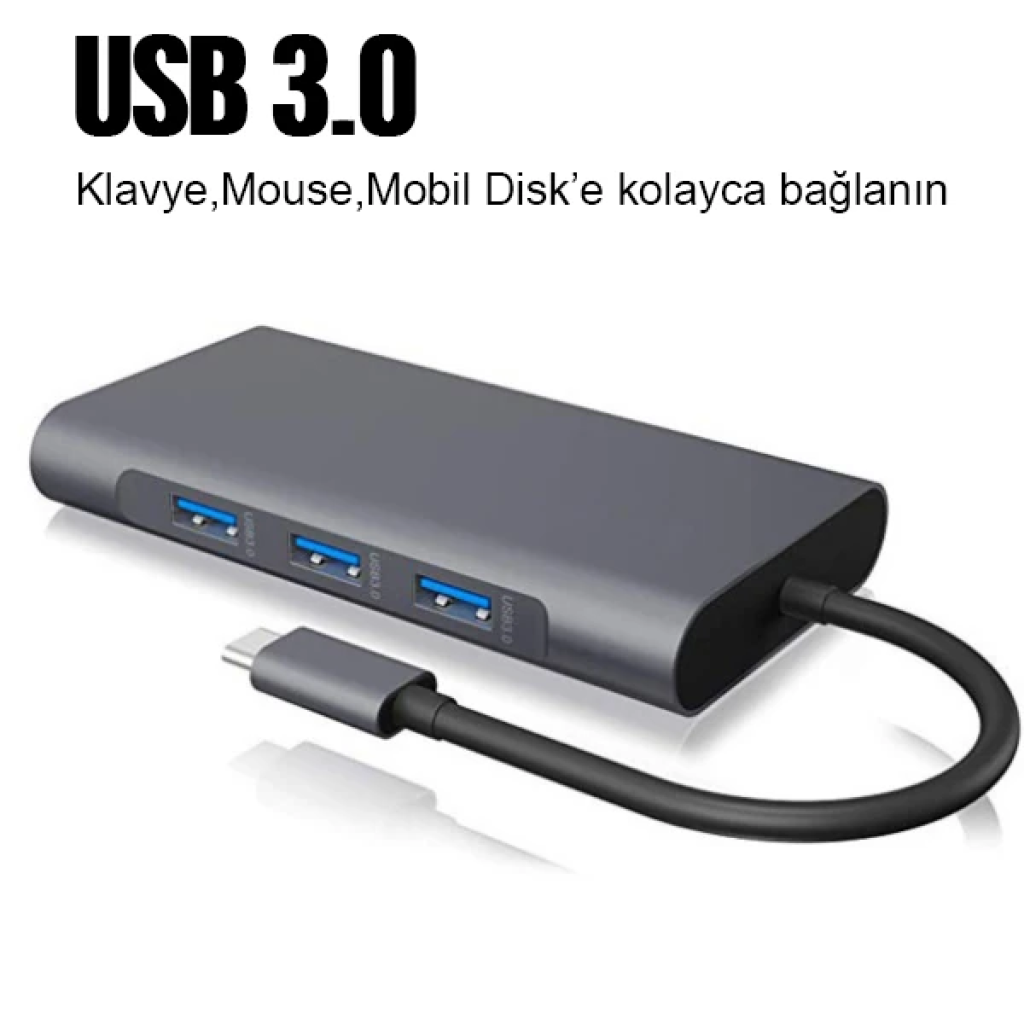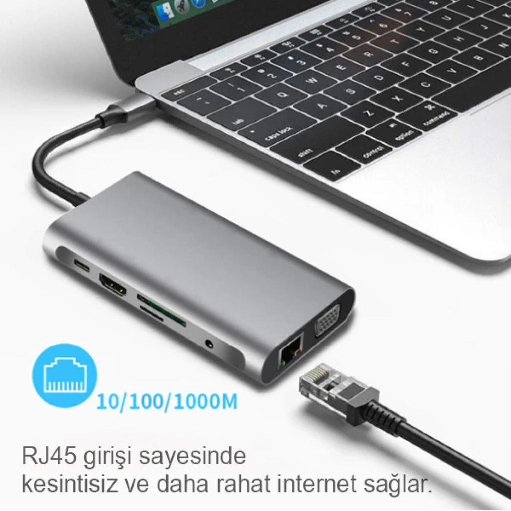 ALLY 10 İN 1 HDMI VGA RJ45 PD USB 3.0 HUB Adaptör Çoklayıcı