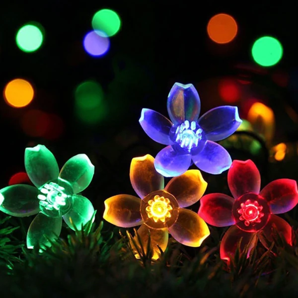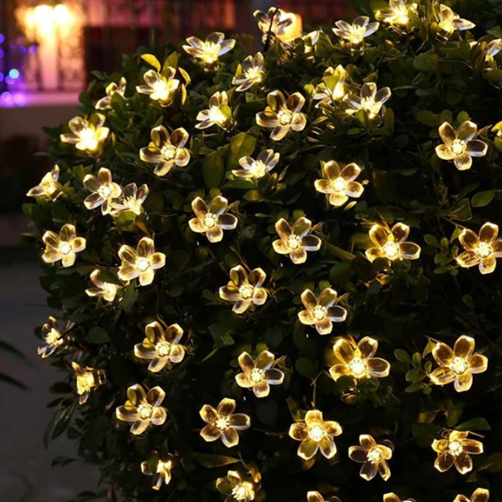 ALLY 7M 50 Kiraz Çiçeği Solar Güneş Enerjili Dış Bahçe Aydınlatma Su Geçirmez Led