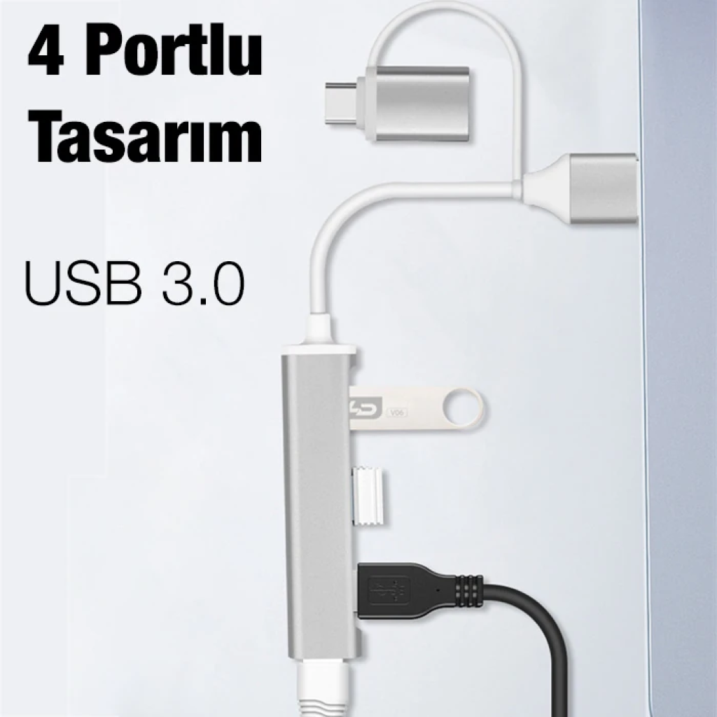 ALLY A-806 4in1 Type-C + USB Girişli USB 3.0 Çoğaltıcı Hub Adaptör Çevirici| Taksit | Taksit Tutarı | Toplam Tutar |