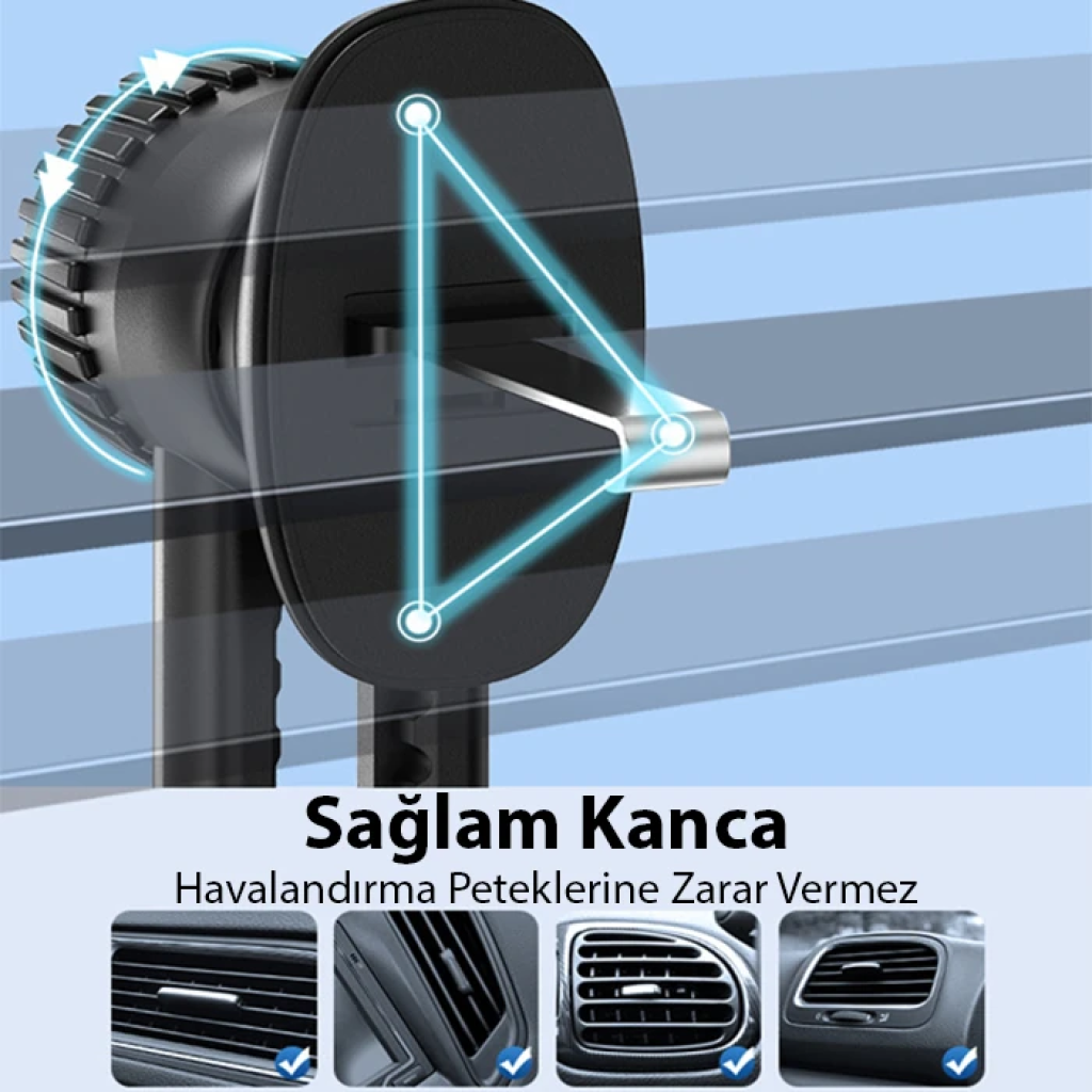 Havalandırma çıkışına sabitleyerek kullanabilirsiniz.
