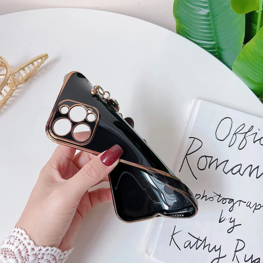 Ally iPhone 12 Pro 6.1inç Kılıf Kalp Bileklik Tutuculu Lüx Silikon Askılı Kılıf