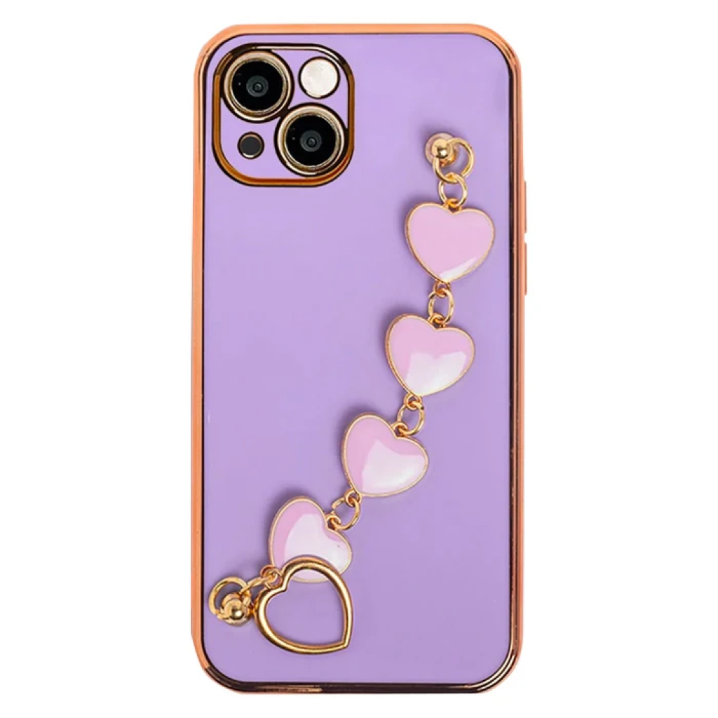 Ally iPhone 13 6.1inç Kılıf Kalp Bileklik Tutuculu Lüx Silikon Askılı Kılıf-(5775)