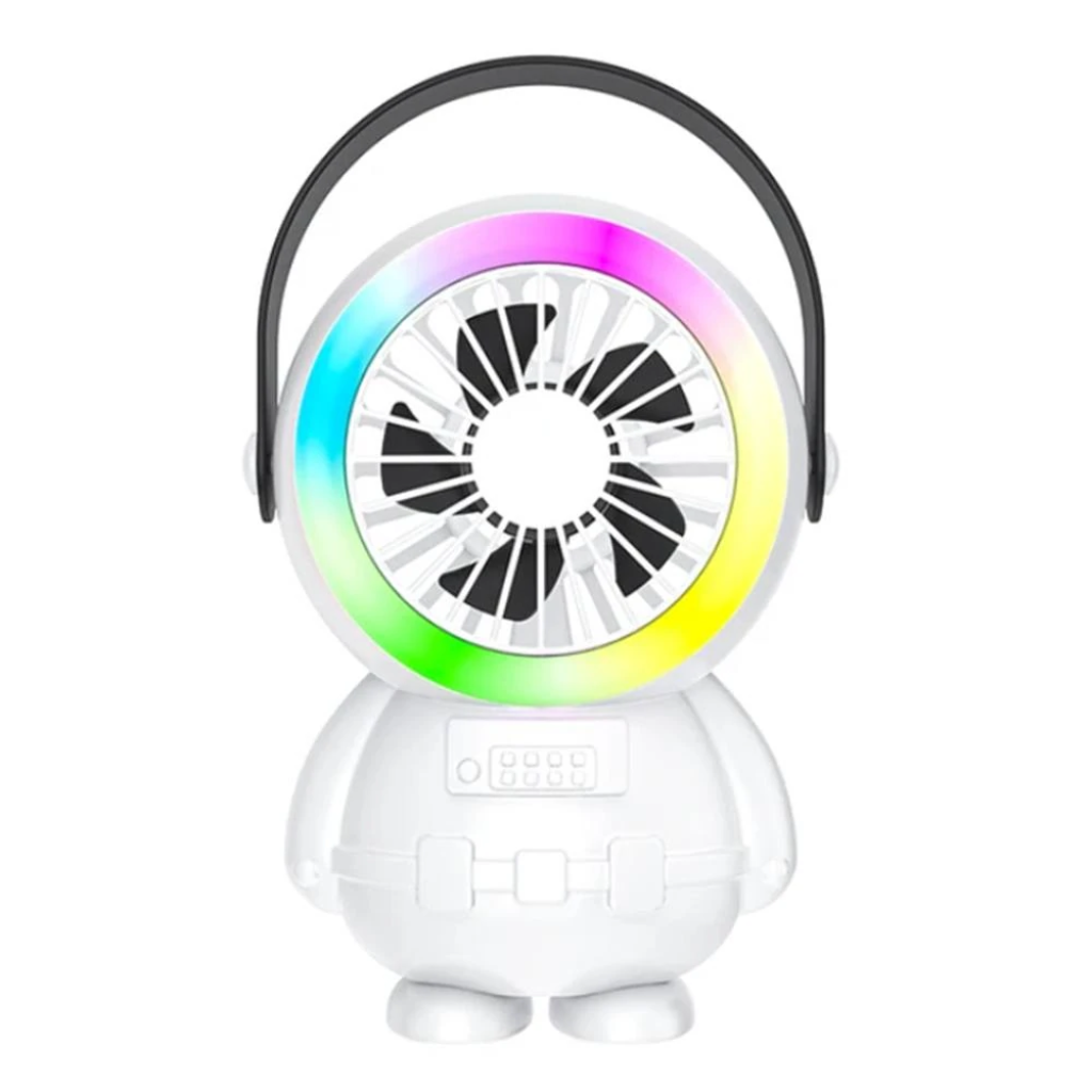 Uzay Çağında Serinlik RGB Aydınlatmalı Astronot Görünümlü El Fanı ile Tanışın! Gün boyu masa başındaki çalışanlar ve bilgisayar oyunu tutkunları için özel olarak tasarlanmış RGB aydınlatmalı astronot görünümlü el fanımız, serinlik, konfor ve görsel şöleni bir arada sunuyor! Ofisinizde yoğun bir iş günü geçirirken ya da evde oyun oynarken serin kalmak artık çok kolay. Bu sevimli ve kullanışlı fan, hem masanın üstüne konulabilir hem de kolayca elle taşınabilir, bu sayede ihtiyacınız olan her yerde serinlik sağlar.