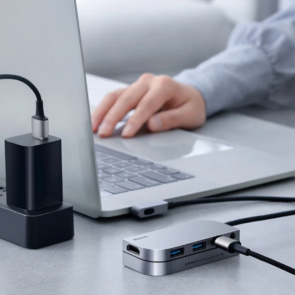 Yeni ve geliştirilmiş tasarımıyla BASEUS Bending Angle No.7 Çok fonksiyonlu 6 Port Type-C Hub (CAHUB-CWJ0G)
