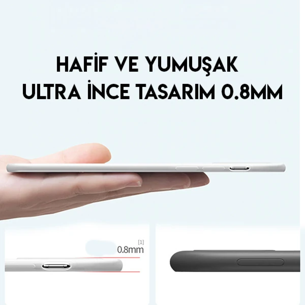 Sıvı silikon malzemeden yapılmış, anti-parmak izi bırakmaz ve çizilmez özelliklere sahiptir. Arka kenarı ile tamamen sarılmış tasarım, çok yönlü koruma ve rahat el hissi verir, bu sıvı silikon kılıf cihazınıza çok fazla hacim katmadan rahatça oturur.