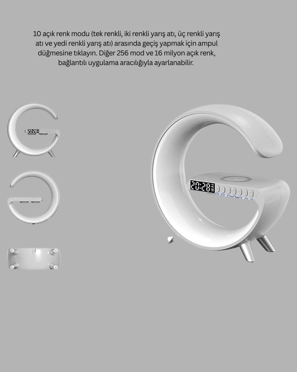 Bu çok amaçlı atmosfer lambası, yaşam alanlarınıza hem teknoloji hem de şıklık katar. Bluetooth hoparlör özelliği sayesinde telefonunuza bağlanarak müzik, podcast veya meditasyon seslerini dinleyebilirsiniz. Kablosuz şarj özelliği ile telefonunuzu masanızdan kaldırmadan pratik şekilde şarj edebilirsiniz.Gündoğumu alarm fonksiyonu, ışığın yavaş yavaş artmasını sağlayarak doğal ve huzurlu bir uyanma deneyimi sunar. Ani seslerle uyanmak istemeyenler için ideal bir çözümdür. Uyku öncesi loş ışık ve müzik kombinasyonu ile rahatlatıcı bir ortam oluşturur.