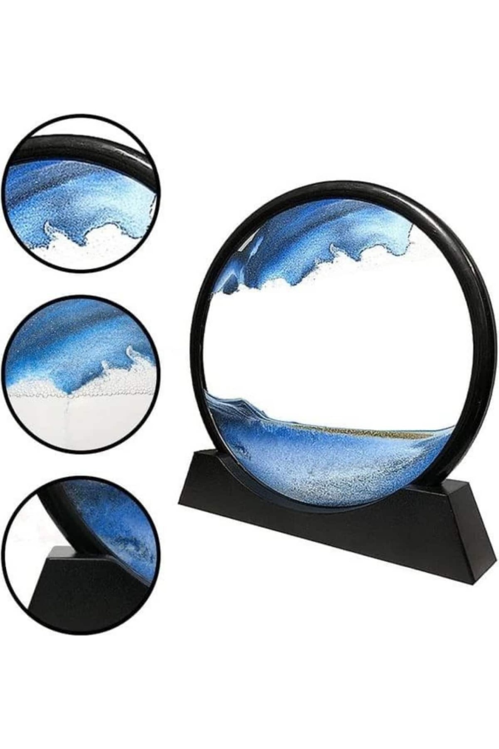 Mekanik detaylarla modern tasarımı bir araya getiren bu 3D LED ışıklı kum saati, sadece bir dekoratif obje olmanın ötesine geçerek bulunduğu ortama zarafet ve huzur katar. Mavi renk temasıyla dinginliği simgelerken, içerisinde bulunan farklı tonlardaki kumların yavaş ve dengeli hareketi izleyiciye adeta hipnotize edici bir seyir sunar. Kumun sıvı içerisinde akışını izlemek, günlük stresinize kısa bir ara vermenize ve rahatlamanıza yardımcı olur.Ürünün dikkat çekici yönlerinden biri de LED aydınlatma özelliğidir. Gece lambası olarak kullanıldığında, yumuşak ve göz yormayan ışığı sayesinde hem dinlendirici bir ambiyans oluşturur hem de gece saatlerinde görsel bir şölen sunar. Kullanılan LED ışıklar uzun ömürlü olup enerji tasarrufu sağlar.Kompakt yapısı ile ev, ofis, çalışma odası, otel lobisi ya da kafe gibi farklı mekanlarda estetik bir dokunuş sunar. Ayrıca bu ürün, sevdiklerine anlamlı ve farklı bir hediye vermek isteyenler için de ideal bir seçenektir. Kumların yavaşça şekil değiştirerek yeniden desenler oluşturması, her bakışta yeni bir görüntüyle karşılaşmanızı sağlar ve bu özelliğiyle dinamik bir dekor unsuru olur.Sağlam ve kaliteli malzemelerden üretilmiş olan bu tablo, uzun süreli kullanımda bile estetik görünümünü korur. Üç boyutlu yapısı sayesinde derinlik hissi verir ve bulunduğu ortamda dikkatleri üzerine çeker.Paket İçeriği:1 adet mavi renk 3D LED ışıklı kum saati / gece lambası / dekoratif kum sanatı objesi.
