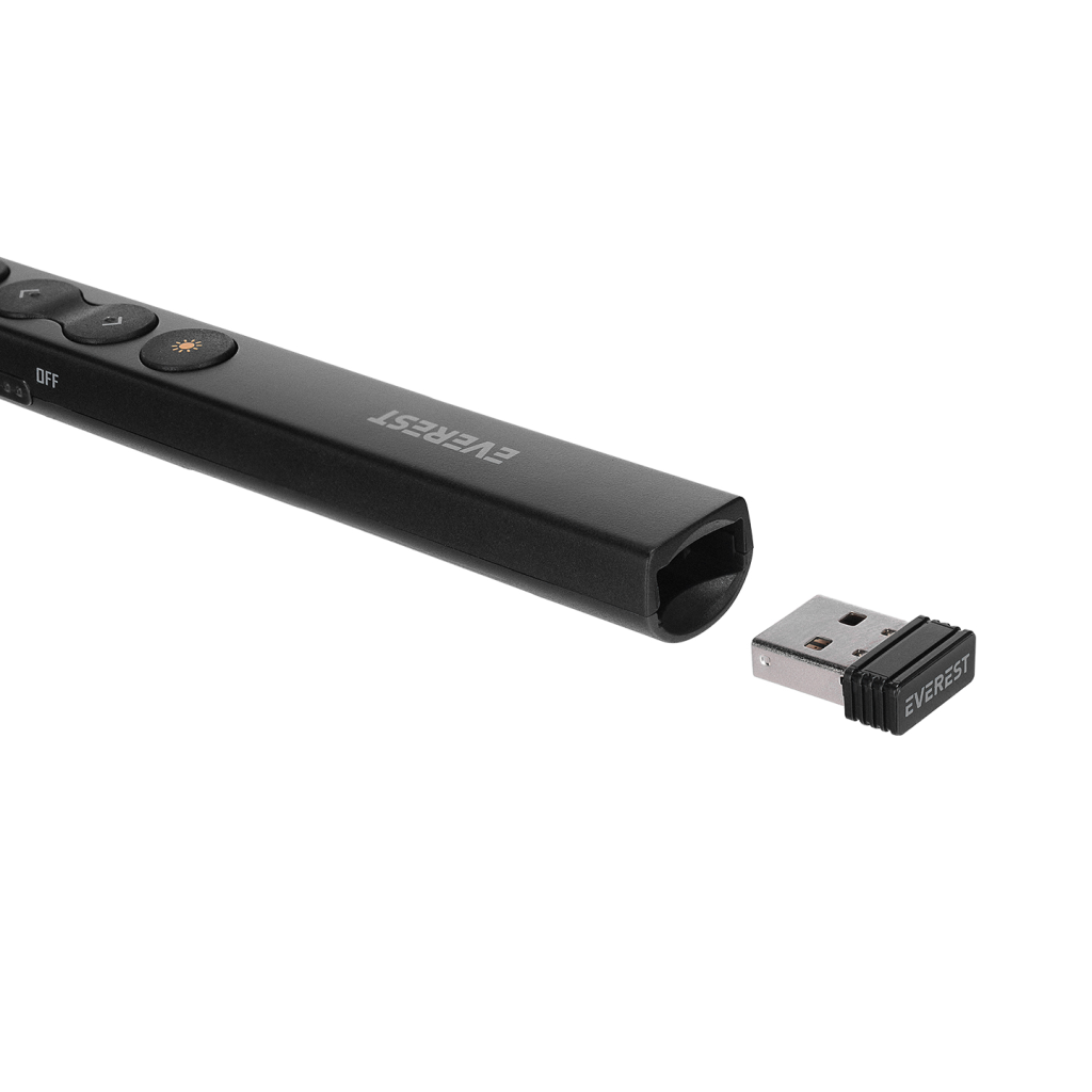 MarkaEverestModelPSN-19AçıklamaKablosuz Profesyonel Sunum CihazıRenkSiyahArayüz2.4 Ghz Wireless DongleTuş Sayısı6Led GöstergesiMaviBatarya1x AAALazer Mesafesi100-200mKablosuz Mesafesi 50-100mÜrün Boyutu136 x 18.5 x 13.5 mmPaket İçeriğiÜrün / Kullanım Klavuzu + GarantiGaranti Süresi24 Ay