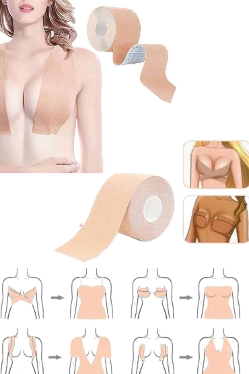 Suya ve Tere Dayanıklı Göğüs BandıGün boyu konfor ve güven sunan göğüs bandı, %95 pamuk ve %5 elastan içeriğiyle cildinize zarar vermeden güçlü bir tutuş sağlar. Özel yapışkan formülü sayesinde hareket halindeyken bile kaymaz ve yerinde sabit kalır. Suya ve tere dayanıklı yapısı, özellikle yaz aylarında ve özel günlerde rahat bir kullanım sunarak kıyafetlerinize mükemmel uyum sağlar.Hafif ve Nefes Alabilen Tasarımİnce ve esnek yapısı sayesinde teninizde yokmuş hissi yaratarak maksimum konfor sağlar. Dekolteli kıyafetler, sırtı açık elbiseler ve spor aktiviteleri için ideal bir tercih olan göğüs bandı, cildinizin nefes almasına yardımcı olur. Dilediğiniz boyutta keserek kişisel kullanımınıza uygun hale getirebilir, özgürce hareket edebilirsiniz.
