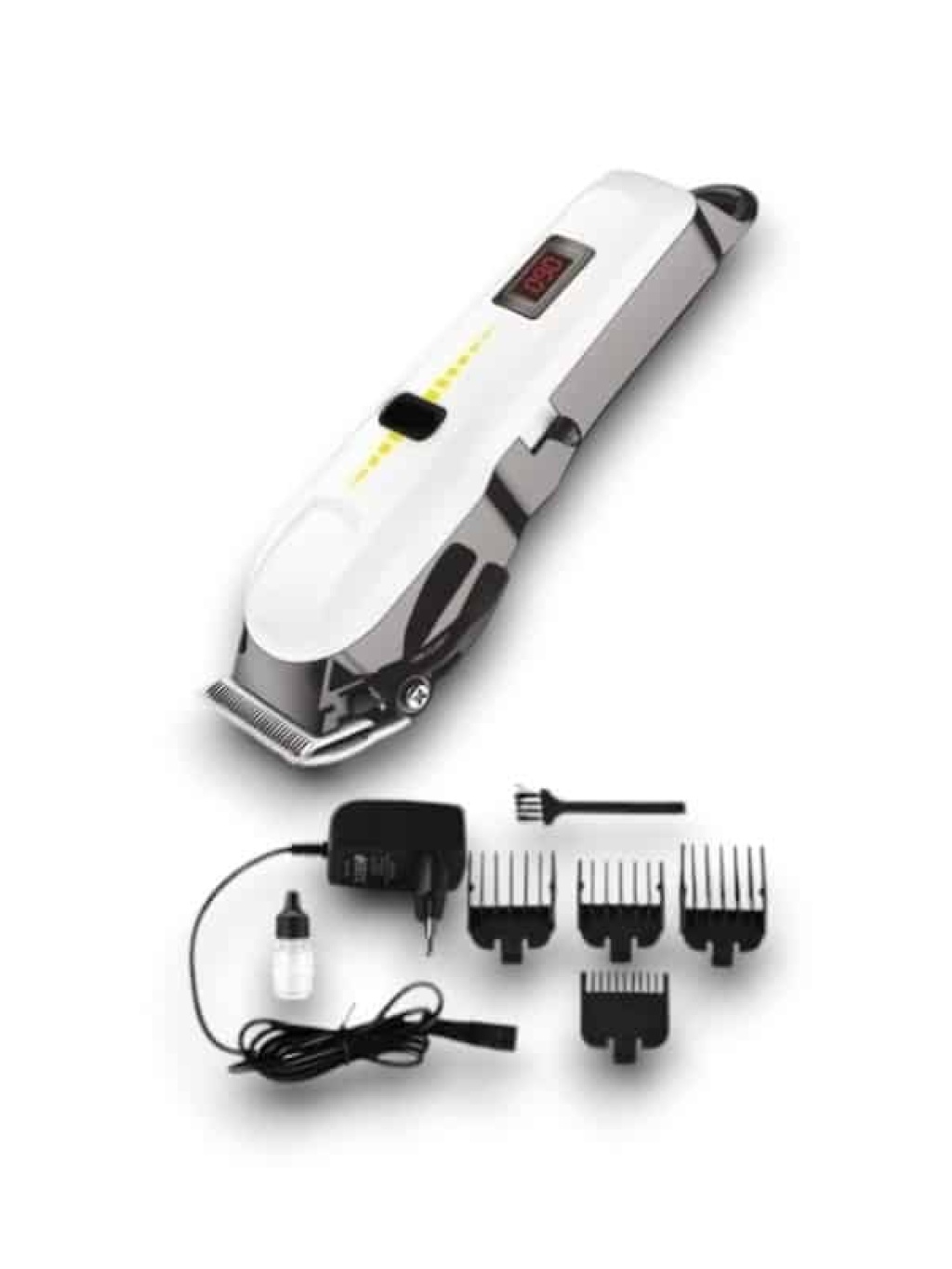 Profesyonel Şarjlı Saç ve Sakal Kesme Makinesi Profesyonel kuaförlerin tercihi olan Profesyonel saçlı saç ve sakal kesme makinesi mükemmel tutuş ve kavrama sağlamak için özel olarak tasarlanmıştır. Ergonomik özelliklerinin yanı sıra yenilikçi ve şık görünüme sahiptir Keskin ve Dayanıklı Çelik Bıçaklar Profesyonel saç ve sakal kesme makinesi, en sert kılların bile tek seferde kesilmesini sağlayan keskin ve dayanıklı çelik bıçaklara kusursuz kesim performansı ortaya koyar. Uzun ömürlü olması için birinci sınıf kalitedeki materyalden üretilmiştir Uzun Kullanım Süresine Sahip Lityum Batarya Kablosuz kullanım rahatlığına sahip Profesyonel saç ve sakal kesme makinesi uzun kullanım süresine sahiptir. Yaklaşık 4 saatte maksimum şarja ulaşan lityum bataryası sayesinde 150 dakikaya kadar kesintisiz saç ve sakal kesme imkanı tanır Güçlü ve Sorunsuz Motor Avantajı 220-240 V 50/60 Hz 3W voltaj seviyesine sahip güçlü motora sahiptir. Motor gücü 3.6 Volttur. Bu sayede hem saç hem de sakal kesiminde sorun yaşamadan profesyonel tıraş avantajı sunar Islak ve Kuru Tıraşa Uygun Tasarım Profesyonel kuaförlerin tercihi Profesyonel saç ve sakal kesme makinesi hem ıslak hem de kuru saç ve sakal kesiminde kullanılabilir Profesyonel Kesim İçin Kılavuz Tarak Aksesuarları Her saç ve sakal kesim tarzına mükemmel uyum için 4 adet kılavuz tarağı ile birlikte gelir.