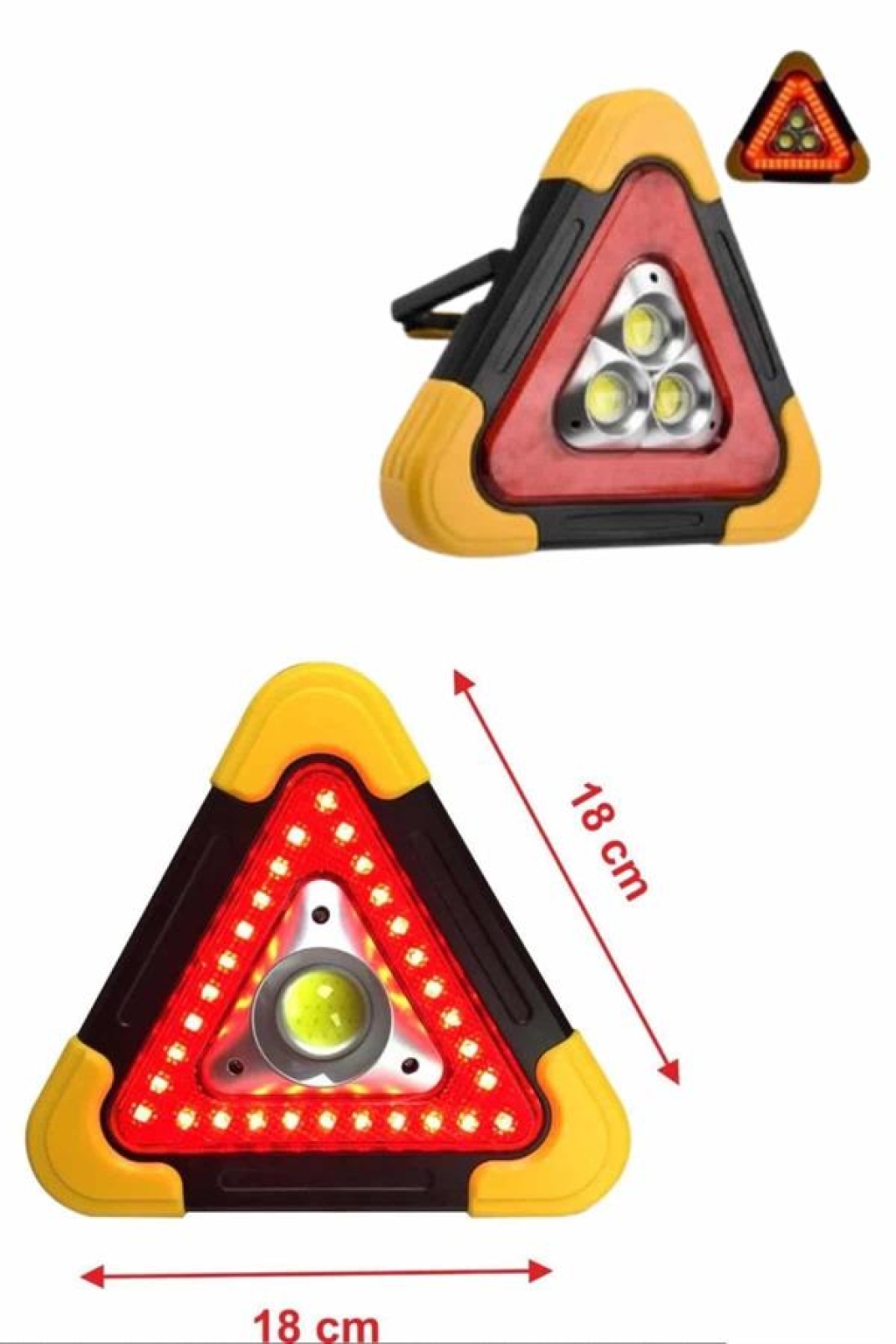 Güneş Enerjili Çok Amaçlı Işıklı İkaz Lambası – Her Ortamda Güvenli AydınlatmaŞarjlı ve güneş enerjili bu çok amaçlı ikaz lambası, doğa sporlarından tamirata, denizden karavancılığa kadar her alanda ihtiyaç duyduğunuz aydınlatmayı güvenli ve pratik bir şekilde sağlar. Arka tarafında yer alan güneş paneli, gün ışığını enerjiye çevirerek cihazın şarj edilmesini mümkün kılar. Böylece elektrik bulunmayan ortamlarda bile kesintisiz ışık sağlamaya devam eder.USB kablo ile şarj edilebilme özelliği, kullanıcıya ekstra esneklik sunar. Ürünle birlikte gelen kablo sayesinde isterseniz elektrikle, isterseniz güneşle kolayca enerji sağlayabilirsiniz. Kompakt tasarımıyla çantada, araçta ya da el altında rahatça taşınabilir. Açıldığında 5 cm genişlik, 24 cm boy ve 27 cm yükseklik ölçülerine ulaşır.500 lumen COB ışık gücü ile güçlü bir aydınlatma sağlayan lamba, farklı ışık modlarıyla birçok farklı kullanım senaryosuna cevap verir.İlk dokunuş: Güçlü beyaz COB ışıkİkinci dokunuş: Zayıf COB ışıkÜçüncü dokunuş: Sabit kırmızı uyarı ışığıDördüncü dokunuş: Yanıp sönen kırmızı uyarı ışığıBeşinci dokunuş: Kısa dalgalı kırmızı uyarıAltıncı dokunuş: KapatmaKullanım Alanları:Dağcılık, balıkçılık, kampçılık, madencilik gibi doğa ve iş aktiviteleri için uygundur. Ayrıca bisiklet, motosiklet, tekne, karavan ve araba gibi araçlarda ikaz lambası olarak da kullanılabilir. Çadırda gece görüşü sağlamak, acil durum sinyali vermek ya da tamir anlarında net aydınlatma sağlamak için idealdir.Dayanıklı yapısı, çok yönlü ışık seçenekleri ve enerji tasarrufu sağlayan güneş paneli ile bu çok amaçlı reflektör, hem güvenliğinizi artırır hem de enerji verimliliği sağlar. Açık hava tutkunlarının ve profesyonellerin çantasında mutlaka bulunması gereken bir üründür.