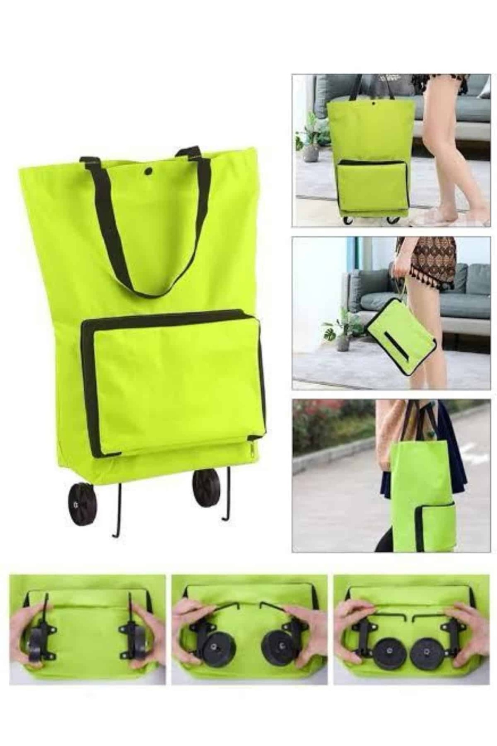 Pratik Katlanabilir Tekerlekli Su Geçirmez Çantalı Çarşı Pazar Market Alışveriş Arabası, alışverişlerinizi daha verimli ve rahat hale getiren, fonksiyonel bir üründür. Katlanabilir tasarımı sayesinde, kullanılmadığı zamanlarda oldukça kompakt hale gelir ve az yer kaplar, böylece depolama konusunda herhangi bir sıkıntı oluşturmaz. Hem pazarda, hem de günlük alışverişlerinizde kullanabileceğiniz bu araba, tekerlekleri sayesinde rahatça taşınabilir. Ayrıca, su geçirmez özelliği ile her türlü hava koşulunda güvenle kullanılabilir. Alışveriş sonrası ağır malzemelerin taşınmasını kolaylaştıran bu araç, aynı zamanda piknik, kamp veya balık tutma gibi dış mekan aktivitelerinde de işinizi görecek şekilde tasarlanmıştır. Ürünü kolayca açıp kullanmaya başlayabilir, katlandığında ise rahatça depolayabilirsiniz. Ürün ölçüleri: Kapalı hali 28 cm x 18 cm, açık hali ise tutma sapı dahil 75 cm yüksekliğe, saplar hariç 48 cm x 38 cm boyutlarına sahiptir.