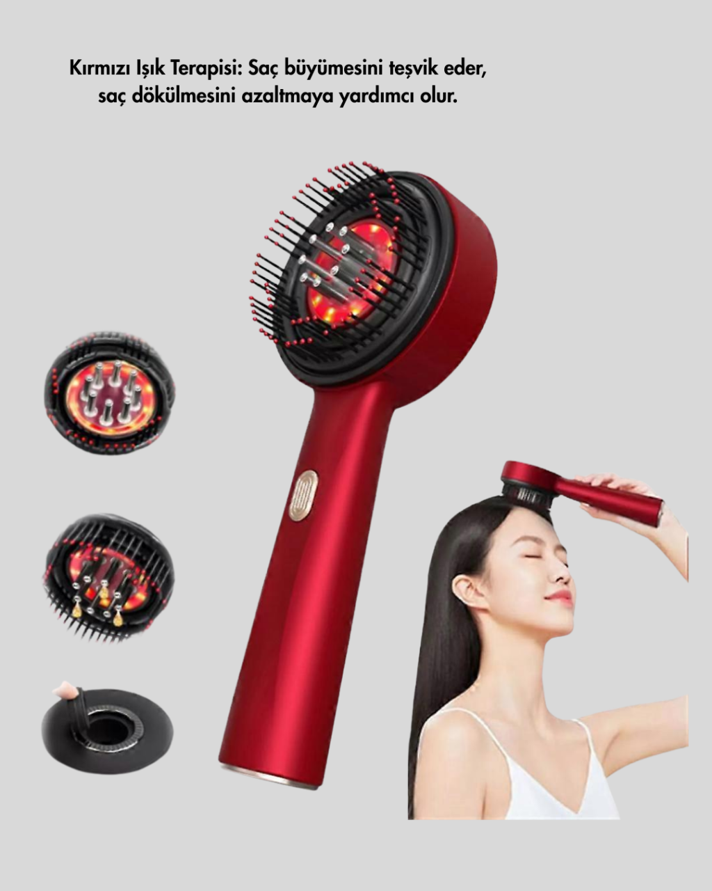 Elektrikli saç masaj fırçası, saç derisini rahatlatmak ve saç bakımını desteklemek için özel olarak geliştirilmiştir. Mikro akım teknolojisi, saç köklerini uyararak daha sağlıklı saç uzamasını destekler. Kırmızı LED ışık terapi, saç derisi hücrelerini canlandırır.72 masaj dişi, insan eli hissini taklit ederken saç derisine zarar vermez. Sıvı yağ aplikatörü sayesinde bakım ürünleri eşit şekilde uygulanır. IPX7 su geçirmez yapısı, ürünü ıslak ve kuru saç kullanımına uygun hale getirir.