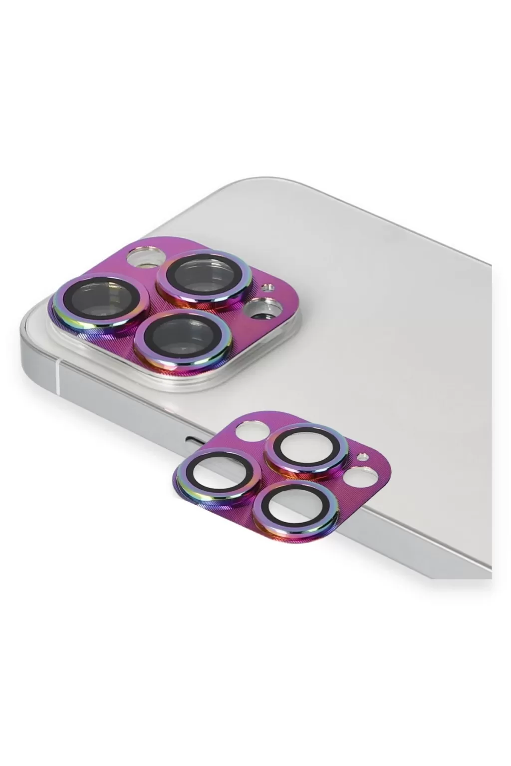 Newface iPhone 13 Pro Max Pers Alüminyum Kamera Lens - Rainbow