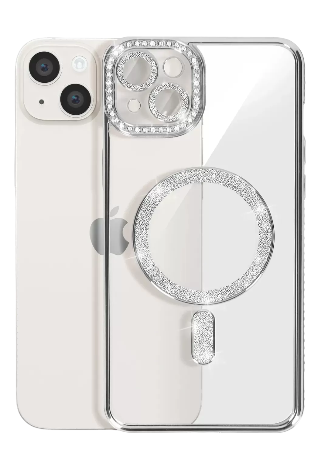 Newface iPhone 15 Kılıf Joke Simli Magneticsafe Kılıf - Gümüş