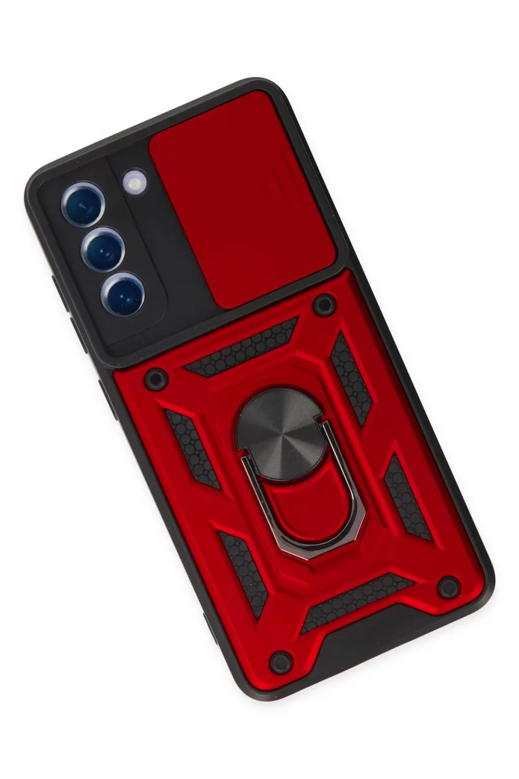 Newface Samsung Galaxy S21 FE Kılıf Pars Lens Yüzüklü Silikon - Kırmızı