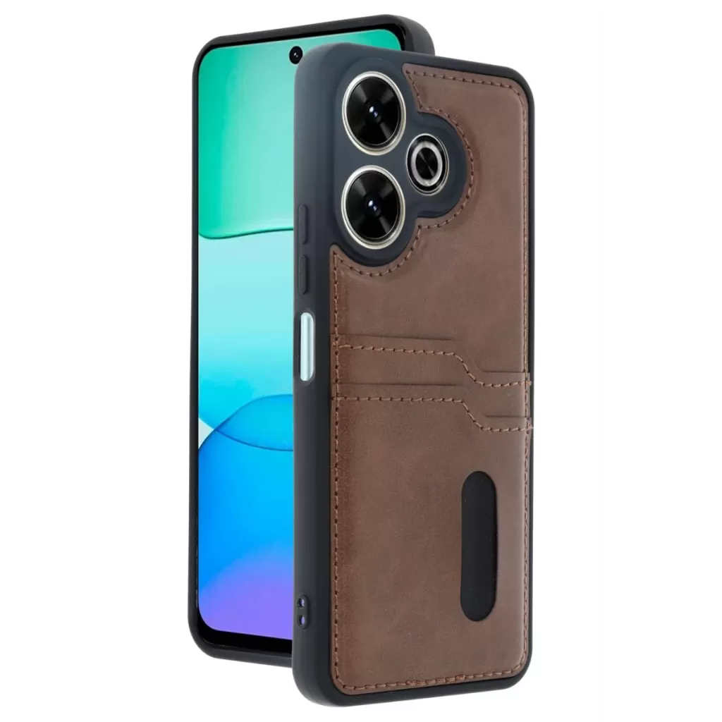 Newface Xiaomi Redmi 13 4G Kılıf Sara Kartvizitli Deri Kılıf - Taba