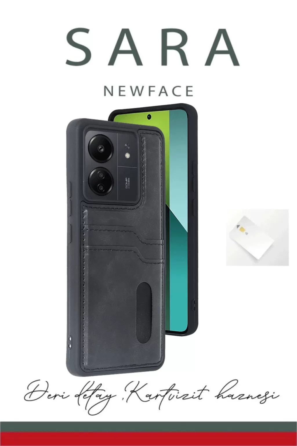 Newface Xiaomi Redmi 13C Kılıf Sara Kartvizitli Deri Kılıf - Koyu Yeşil