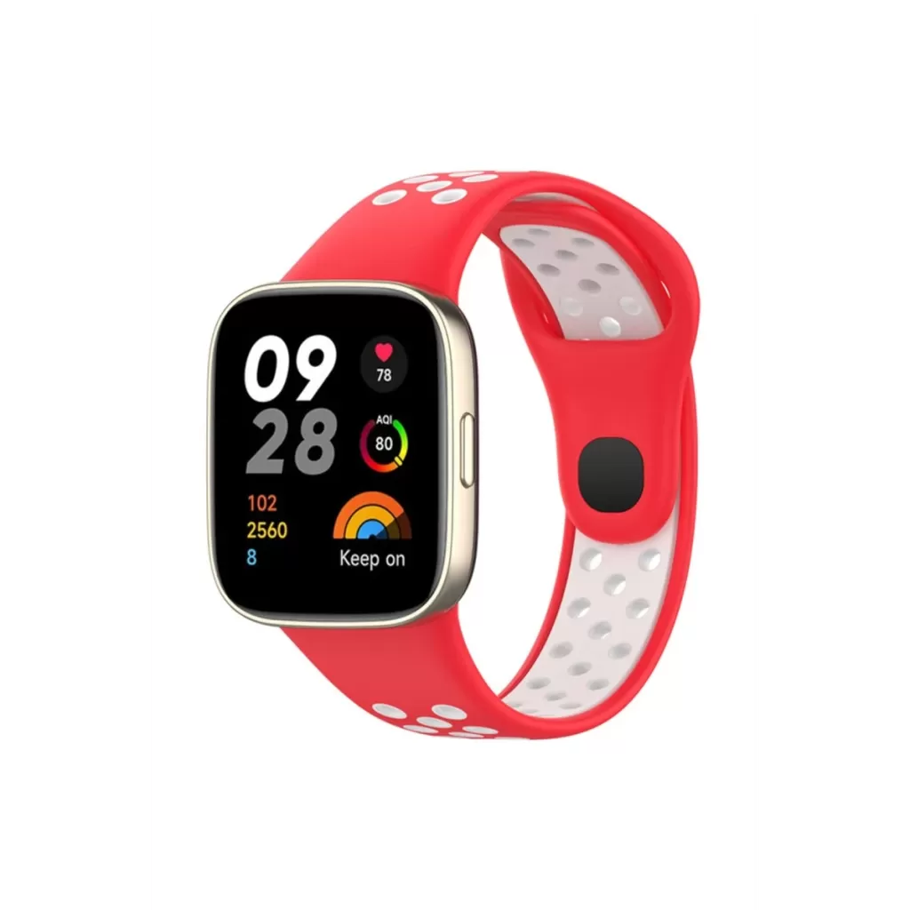 Newface Xiaomi Redmi Watch 3 Spor Delikli Kordon - Kırmızı-Beyaz