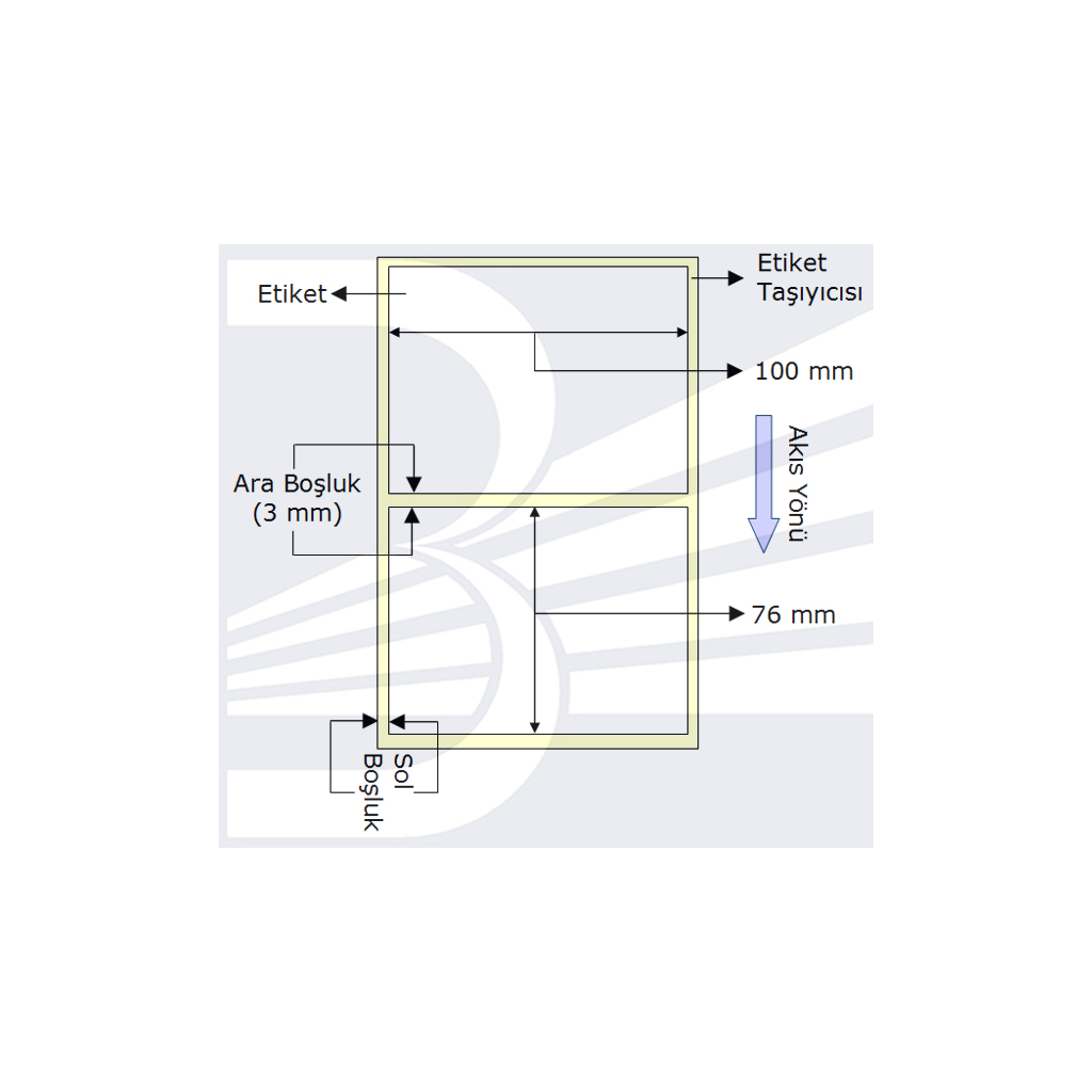 MalzemeTermal Ölçü100 mm X 76 mm (Tekli) YapışkanVar Kullanılabilen Ribon tipiKullanılmıyor. Gramaj110 gram ( ±10 gram) Etiket Genişliği100 mm Etiketin Yüksekliği76 mm Bir satırdaki etiket sayısı1 Rulodaki satır sayısı570 Rulodaki etiket sayısı570 Rulo iç çapı40 mm Rulo dış çapı100 mm ( ±5 mm) Rulo genişliği100 mm Etiket rengiBeyaz Taşıyıcı rengiAçık sarıArgox OS-204Argox OS-214TTArgox OS-214PlusArgox OS-2140Argox OS-2140DArgox A-200Argox A-2240Argox CP-2140Argox R-400Argox R-600Argox X-1000+Argox X-1000VArgox X-1000VLArgox X-2000+Argox X-2000VArgox X-3000+Argox X-3200Argox G-6000AVERY DENISSON AP 5.4AVERY DENISSON 64.06AVERY DENISSON 64.08BEIYANG BTP-2200EBEIYANG BTP-2300EBEIYANG BTP-L42BIRCH BP-343DBIRCH GEMINI TBIRCH GEMINI 2MBIRCH APOLLO SerisiBIRCH BP-742BIRCH BP-743CAB A4+CAB A6+CAB A8+CAB MACH4CAB E4CITIZEN CLP-521CITIZEN CLP-621CITIZEN CLP-631CITIZEN CLP-7202Datamax E-4203Datamax E-4208Datamax I-4208DATAMAX M-4206Godex EZ-1105Godex EZ-1100PlusGodex G-500Godex G-530Godex EZPi-1300Godex EZ-2200PlusGodex EZ-2300PlusIntermec PF8INTERMEC PC4MONARCH 9416 XL TTMONARCH 9416 XL TDPRINTRONIX T4MPRINTRONIX T5000 SerisiSato CL400eSato CX400Toshiba TEC B-EV4DToshiba TEC B-EV4TToshiba TEC B-SA4TMToshiba TEC B-SX600Toshiba TEC B-SV4Toshiba TEC B-443TSC TDP-244TSC TTP-244TSC TTP-247TSC TTP-243 PlusTSC TTP-244ME PlusTSC TTP-245 PlusTSC TTP-342M PlusTSC TTP-384MTSC TTP-342 PlusTSC TTP-343 PlusZebra TLP-2844Zebra GK420TZebra GK420DZebra GX420TZebra GX420DZebra GX430TZebra S-600Zebra ZM-400Zebra ZM-600ZEBRA S4MZebra 110i