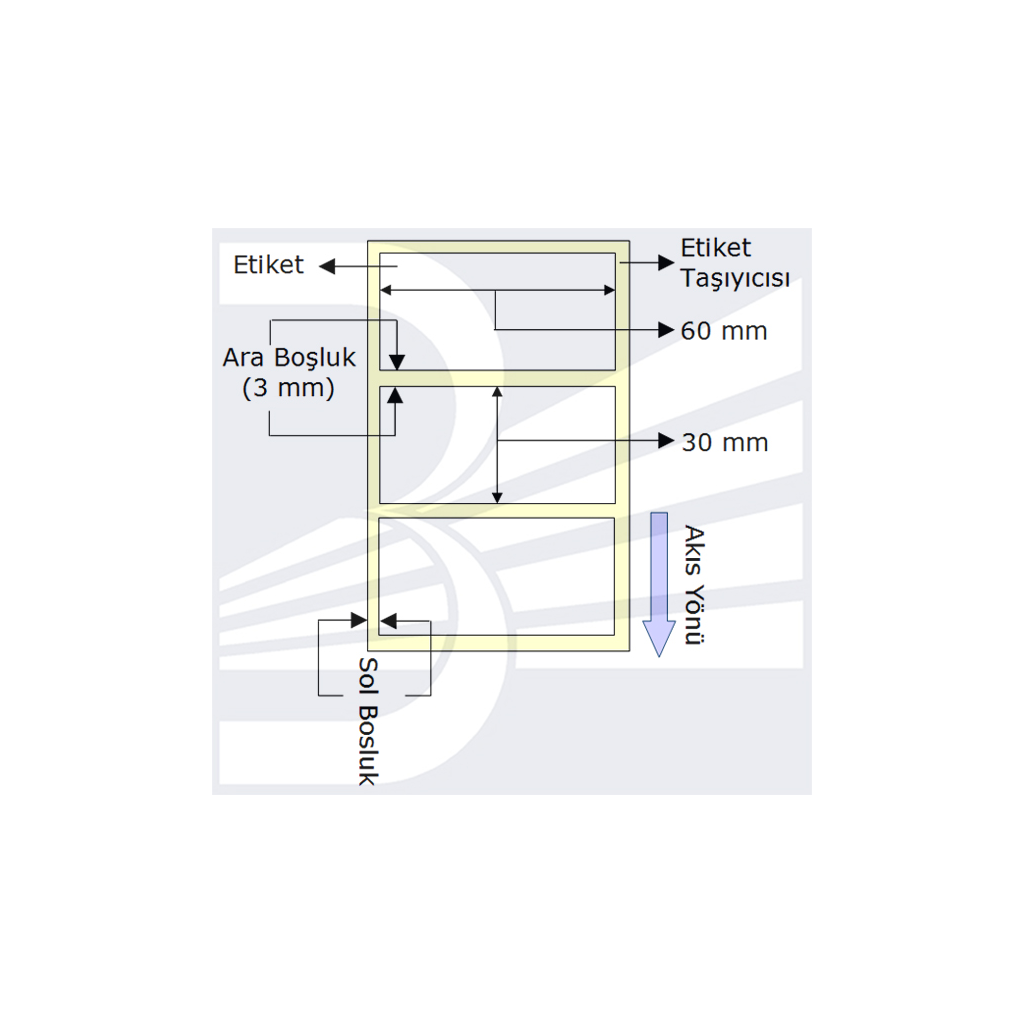 MalzemeTermal Ölçü60 mm X 30 mm (Tekli) YapışkanlıVar Kullanılabilen Ribon tipiKullanılmıyor. Gramaj110 gram ( ±10 gram) Etiket Genişliği60 mm Etiketin Yüksekliği30 mm Bir satırdaki etiket sayısı1 Rulodaki satır sayısı1.000 Rulodaki etiket sayısı1.000 Rulo iç çapı40 mm Rulo dış çapı100 mm ( ±5 mm) Rulo genişliği66 mm Etiket rengiBeyaz Taşıyıcı rengiAçık sarı Argox OS-204Argox OS-214TTArgox OS-214PlusArgox OS-2140Argox OS-2140DArgox A-200Argox A-2240Argox CP-2140Argox R-400Argox R-600Argox X-1000+Argox X-1000VArgox X-1000VLArgox X-2000+Argox X-2000VArgox X-3000+Argox X-3200Argox G-6000AVERY DENISSON AP 5.4AVERY DENISSON 64.06AVERY DENISSON 64.08BEIYANG BTP-2200EBEIYANG BTP-2300EBEIYANG BTP-L42BIRCH BP-343DBIRCH GEMINI TBIRCH GEMINI 2MBIRCH APOLLO SerisiBIRCH BP-742BIRCH BP-743CAB A4+CAB A6+CAB A8+CAB MACH4CAB E4CITIZEN CLP-521CITIZEN CLP-621CITIZEN CLP-631CITIZEN CLP-7202Datamax E-4203Datamax E-4208Datamax I-4208DATAMAX M-4206Godex EZ-1105Godex EZ-1100PlusGodex G-500Godex G-530Godex EZPi-1300Godex EZ-2200PlusGodex EZ-2300PlusIntermec PF8INTERMEC PC4MONARCH 9416 XL TTMONARCH 9416 XL TDPRINTRONIX T4MPRINTRONIX T5000 SerisiSato CL400eSato CX400Toshiba TEC B-EV4DToshiba TEC B-EV4TToshiba TEC B-SA4TMToshiba TEC B-SX600Toshiba TEC B-SV4Toshiba TEC B-443TSC TDP-244TSC TTP-244TSC TTP-247TSC TTP-243 PlusTSC TTP-244ME PlusTSC TTP-245 PlusTSC TTP-342M PlusTSC TTP-384MTSC TTP-342 PlusTSC TTP-343 PlusZebra TLP-2844Zebra GK420TZebra GK420DZebra GX420TZebra GX420DZebra GX430TZebra S-600Zebra ZM-400Zebra ZM-600ZEBRA S4MZebra 110i