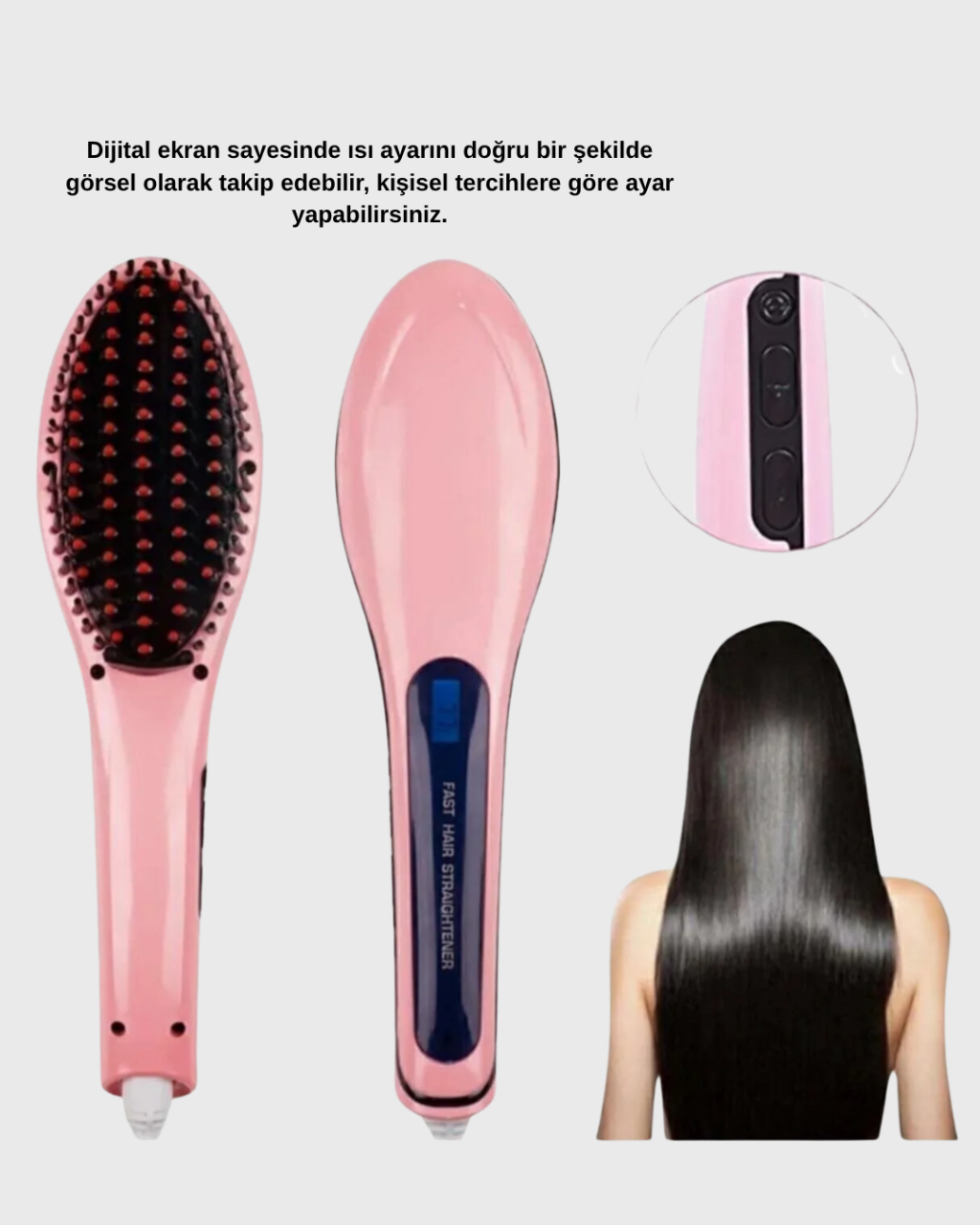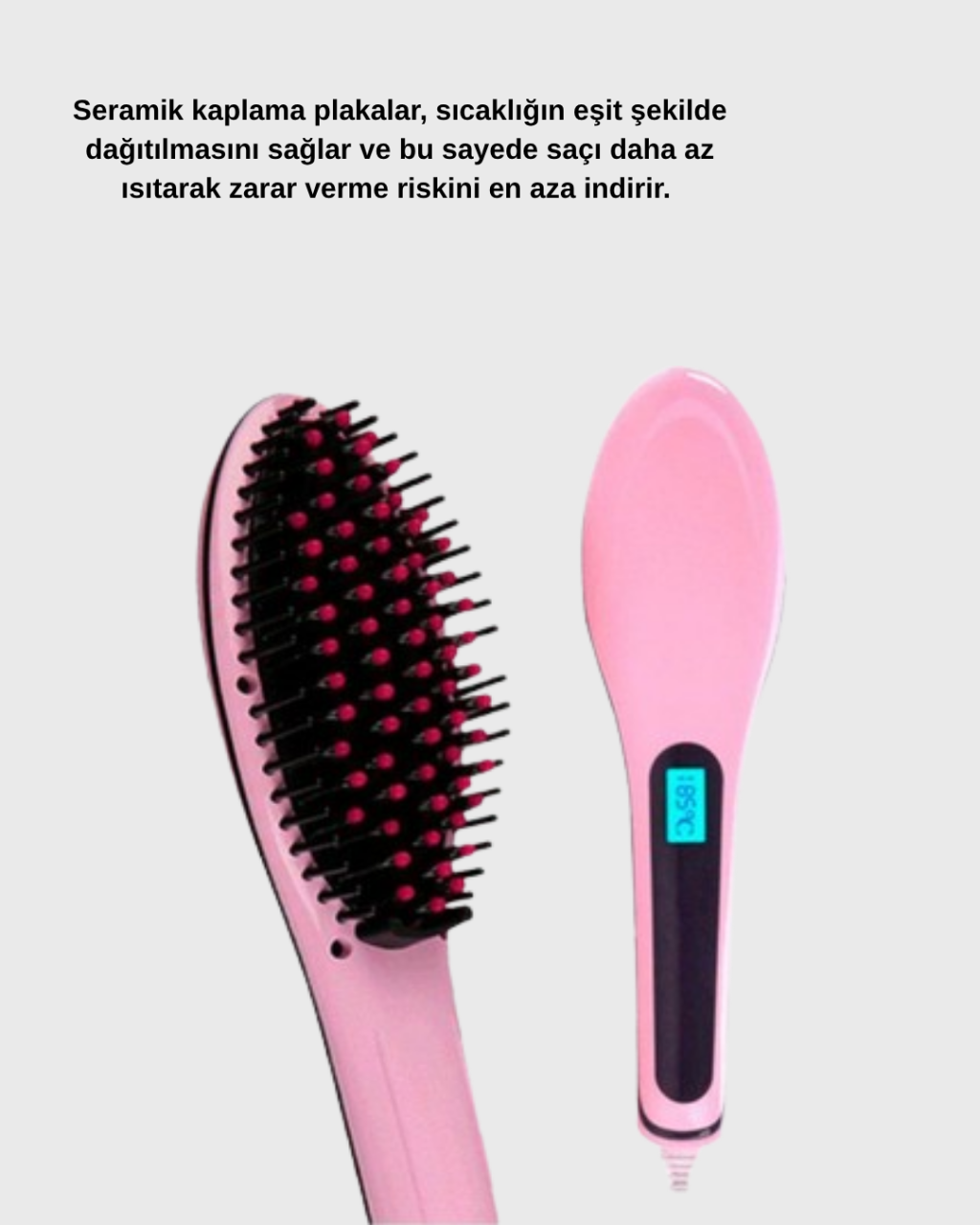 Bu profesyonel saç düzleştirici, hem günlük kullanımda hem de özel günlerde salon kalitesinde sonuçlar almak isteyen kullanıcılar için tasarlanmıştır. 5 kademeli ayarlanabilir ısı sistemi sayesinde her saç tipine uygun kullanım sunar. İnce telli saçlar için daha düşük sıcaklıklarda, kalın ve güçlü saç telleri için daha yüksek sıcaklıklarda çalışarak istenilen sonucu kısa sürede elde etmenizi sağlar. 80°C ile 230°C arasında geniş bir sıcaklık aralığı sunduğu için hem nazik hem güçlü şekillendirme işlemlerinde kusursuz performans sergiler.Seramik kaplama plakaları, ısıyı eşit biçimde dağıtarak saçın her telinin aynı oranda ısınmasını sağlar. Bu sayede saçın fazla ısıya maruz kalma riski en aza iner ve saç kırıkları önemli ölçüde azalır. İyon teknolojisi, elektriklenmeyi ve kabarmayı önleyerek saça parlak ve pürüzsüz bir görünüm kazandırır. Saç yüzeyindeki nemi dengede tutarak işlem sonrası daha canlı ve bakımlı bir görüntü oluşturur.Dijital ekranı sayesinde tercih ettiğiniz ısı seviyesini net bir şekilde takip edebilirsiniz. Hızlı ısınma özelliği yalnızca birkaç dakika içinde cihazı kullanıma hazır hale getirir, bu da özellikle sabahları zaman kazanmanızı sağlar. 360 derece dönebilen kablo yapısı, kullanım sırasında rahat hareket etmenize imkan tanır ve kablonun kırılmasını önler.Çift voltaj desteği sayesinde cihazı farklı ülkelerde de güvenle kullanabilirsiniz. Bu özellik, sık seyahat eden kişiler için büyük avantaj sağlar. Hafif, ergonomik ve dayanıklı tasarımıyla bu saç düzleştirici uzun süreli kullanımda bile konfor sağlar. Parlak, yumuşak ve pürüzsüz saçlara kısa sürede ulaşmak isteyen herkes için mükemmel bir tercihtir.