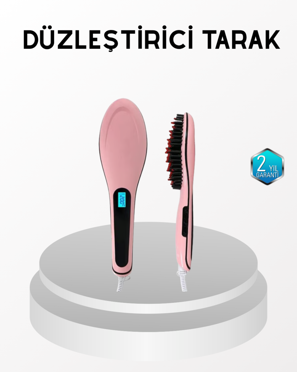 Saç bakımında teknolojiyi sevenler için özel olarak tasarlanan bu dijital düzleştirici tarak, iyon kontrol sistemiyle saçlarınızı düzleştirirken aynı zamanda korur. Elektriklenmeyi önleyen bu sistem, saç tellerinin doğal nem dengesini korur ve ipeksi bir parlaklık sunar.Seramik plakalar ısıyı eşit şekilde dağıtarak saç tellerine zarar vermeden mükemmel bir sonuç verir. 80°C’den 230°C’ye kadar 5 kademeli sıcaklık ayarı sayesinde her saç tipi için doğru sıcaklığı bulabilirsiniz. Dijital ekran üzerinden ısı seviyesini anlık olarak takip ederek profesyonel bir şekillendirme deneyimi yaşarsınız.Cihaz, sadece 3–5 dakika içinde istenilen sıcaklığa ulaşır ve zamandan tasarruf sağlar. Uzun kablosu ve 360° dönebilen yapısı sayesinde kullanım sırasında hareket özgürlüğü sunar. ABS plastik gövdesi yüksek ısıya dayanıklıdır, güvenli ve uzun ömürlü bir kullanım sağlar. Şık tasarımı, kompakt boyutu ve hızlı performansı ile bu düzleştirici, günlük stilinize profesyonel dokunuşlar katmak için ideal bir seçenektir.