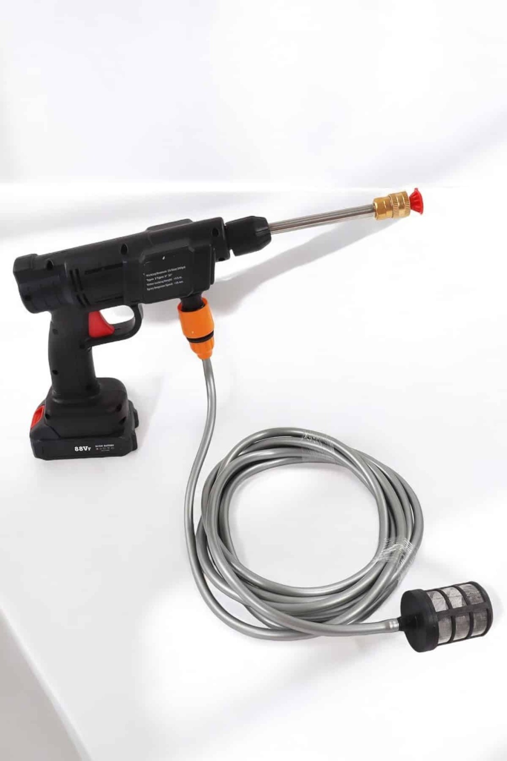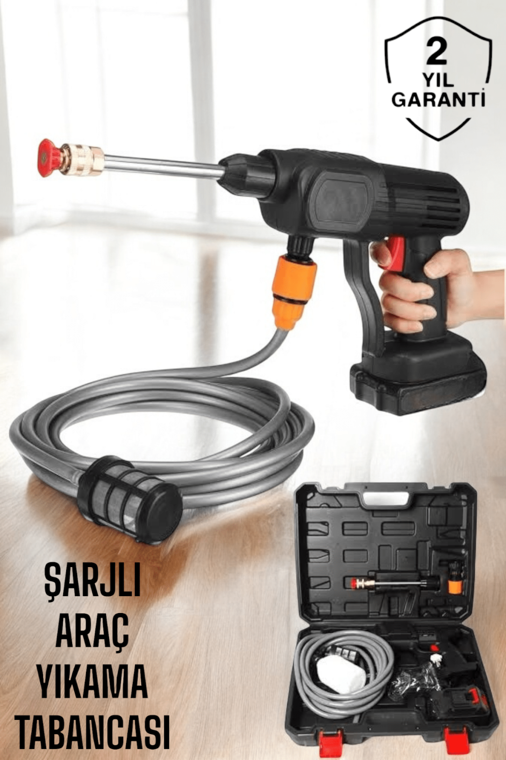 Yüksek Güçlü Motor 300W motorlu, maksimum 30 Bar su basıncına sahiptir. Verimli ve hızlı temizlik için yeterince güçlüdür. Ayrıca aşırı sıcaklık için otomatik kapanma özelliğine sahip bir sıcaklık koruma fonksiyonuna sahiptir. ve aşırı yük, güvenlik tehlikelerini ortadan kaldırabilir.Kullanımı Kolay kendinden emişli / musluk 2 çeşit su girişi, su almak daha uygun. Kurulumu kolaydır, tüm arayüzler hızla takılıp kurulur. Filtre sepetli 5 m'lik hortum, kirleri, parçacıkları, atık yaprakları, camuru vb. etkili bir şekilde filtreleyebilir. Kovadan/gölden/nehirden/musluktan kolayca su alabilirsiniz. Bu kablosuz yüksek basınçlı su tabancası, geleneksel küçük yüksek basınçlı temizleyicilerden daha taşınabilirdir.Şarj Edilebilir Pil 1 adet çıkarılabilir 15000mAh yüksek kapasiteli lityum pil ile donatılmıştır ve uzun süreli kullanım sağlar. Dolu şarjlı tek pil ile aracınızı rahatlıkla yıkayabilirsiniz. Bir kez tamamen şarj olması 4 saat sürer ve tek bir pilin pil ömrü 25 dakikaya kadar çıkar. Gövde su geçirmez özel malzemeden yapılmış olup, su ve elektrik izolasyonu daha güvenlidir. Her kullanımdan sonra pili kuru tutun, zamanında tamamen şarj edin.Mükemmel Hizmet Bu çok amaçlı yüksek basınçlı su tabancası, araba yıkama, bahçe sulama, tarımsal sulama ve günlük temizlik için çok uygundur. kullanımınız için 2 farklı nozul etkili temizlik. Akülü kablosuz yüksek basınçlı temizleme makinemiz çift sulama sistemine sahiptir. Sektör modeli ve doğrudan enjeksiyon modu için uygun iki çeşit nozul ile donatılmıştır. Sağlanan yüksek/düşük basınçlı nozullar ve temizlik maddesi tankları, araçları, bisikletleri, tekneleri, pencereleri ve şeritleri temizlemek için yaygın olarak kullanılabilir. Güç: 300W / 48V - 10ABatarya Kapasitesi: 15.000mAhKullanım Süresi: 20-30 DakikaAğırlık: 2kgHortum Uzunluğu: 5metreÇalışma Basıncı: 24.5bar/350psiPüskürtme Tepki Hızı: <15 sn.Su Emme Yüksekliği: >3.5mModel No: 8106 Paket İçeriği:* 48V Sulama Tabancası* Taşıma Çantası* 24V 15.000mAh Akü* 5 metre esnek boru* EU şarj adaptörü* Hortum filtresi* 2 Adet uç (düz ve dağınık su püskürtmesi)* 2 adet Hortum bağlantı ucu* Uzatma şaftı* Köpük veya ilaç haznesi