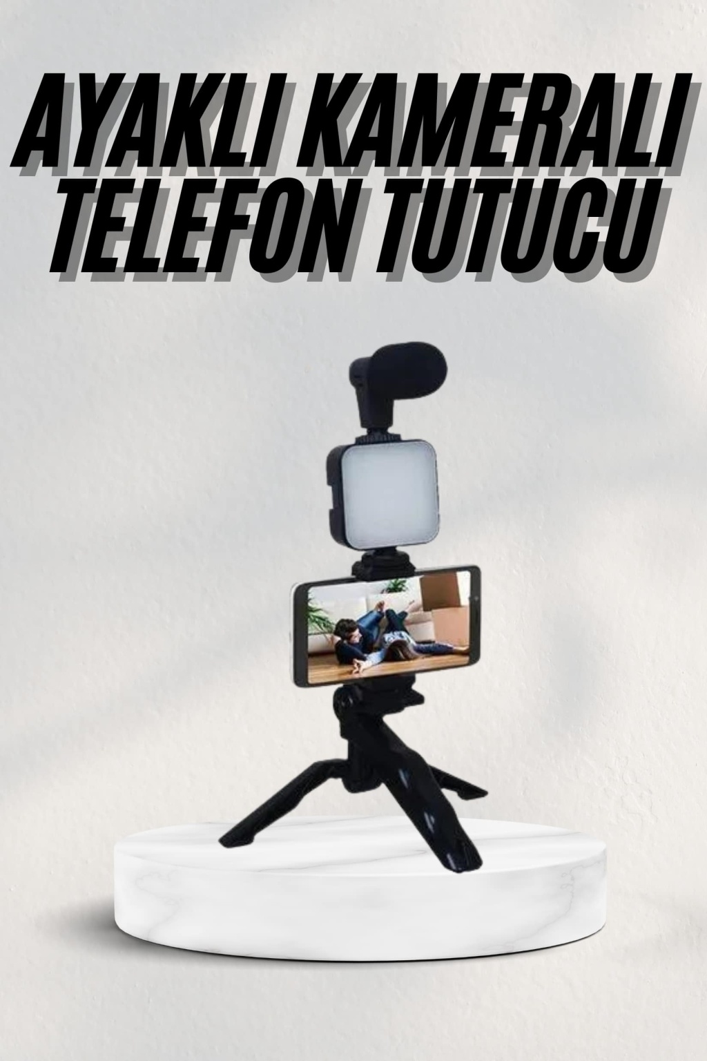 Telefon Tutucu Led Işıklı Kumandalı Mikrofon Telefon Vlog Video Kayıt