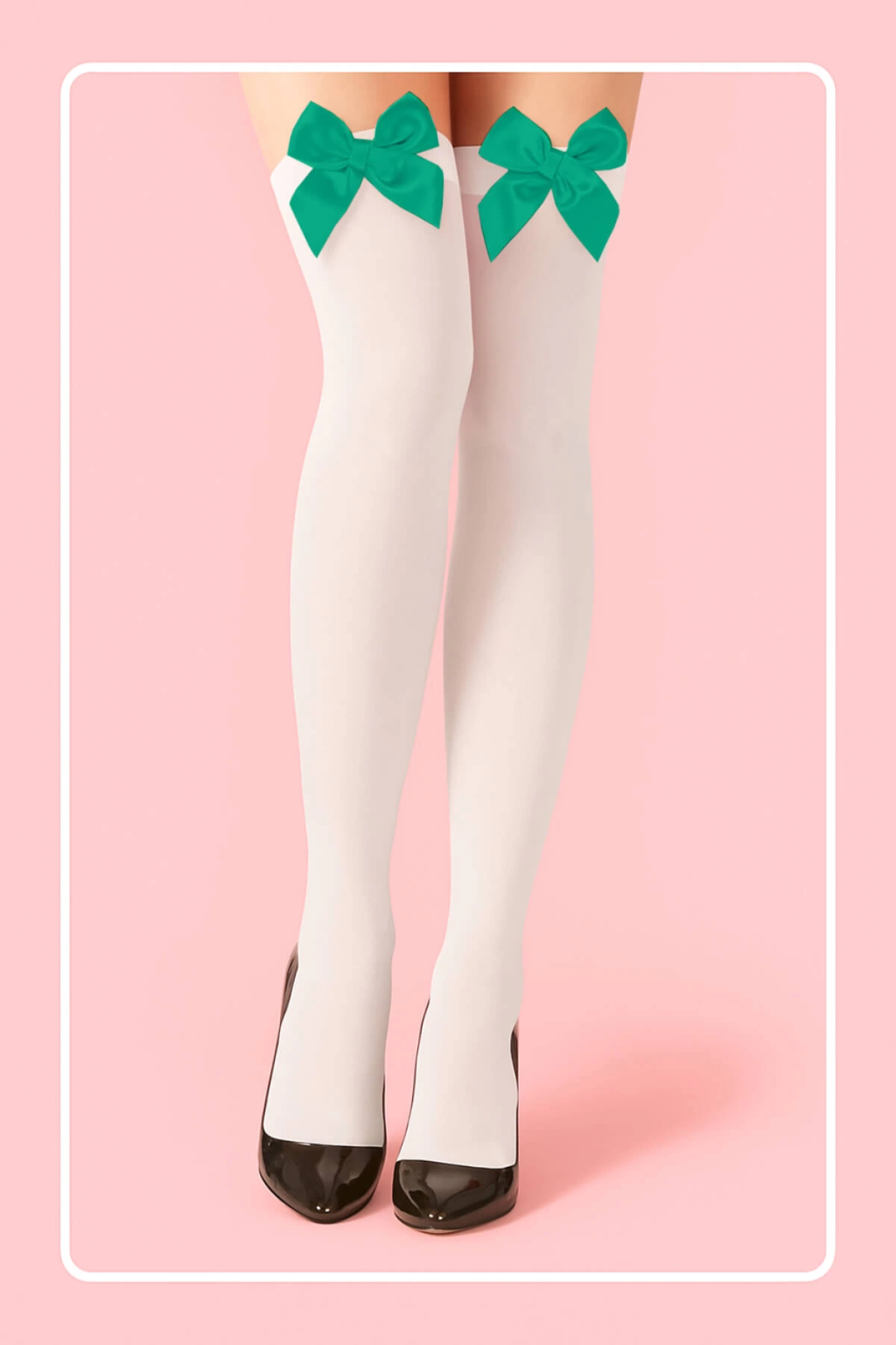 Yeşil Fiyonklu Beyaz Jartiyer Çorabı TM1380